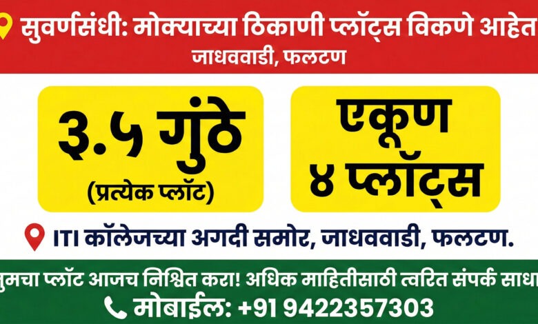 जाधववाडी येथील आयटीआय (ITI) कॉलेजच्या अगदी समोर मोक्याच्या ठिकाणी प्लॉट्स तातडीने विकणे आहेत. गुंतवणूक किंवा घर बांधणीसाठी ही एक उत्तम संधी आहे.