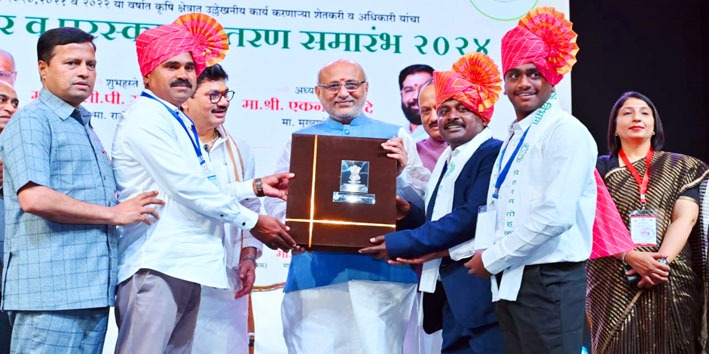 हा पुरस्कार उपमुख्यमंत्री अजित पवार व कृषिमंत्री धनंजय मुंढे व प्रधान सचिव जयश्री भोज, कृषी आयुक्त रवींद्र बनवडे, फलोत्पादन संचालक महाराष्ट्र राज्य कैलास मोते तसेच संचालक विनयकुमार आवटे, विकास पाटील, सुनील बोरकर आणि अंकुश माने सहसंचालक यांच्या उपस्थितीत नॅशनल स्पोर्ट्स क्लब, वरळी मुंबई येथे प्रदान करण्यात आला.