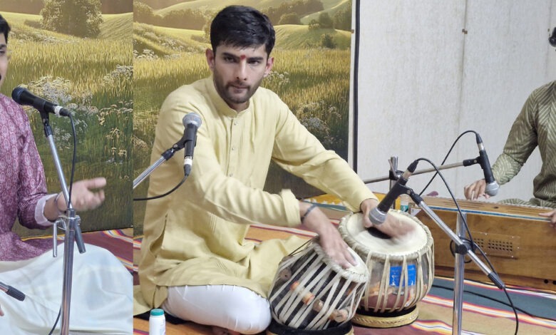 सातारा – संगीत महोत्सवात गायन सादर करताना अभयसिंह वाघचौरे. त्यावेळी संवादिनीवर स्वानंद राजोपाध्ये, तबला वादन करताना राघव नरेवाडीकर. (छाया – अतुल देशपांडे)