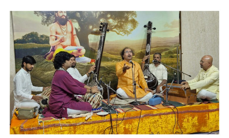 सज्जनगड – येथील भक्त निवासात श्री समर्थ सेवा मंडळ आयोजित दासनवमी संगीत महोत्सवात गायन करताना जयंत केजकर. (छायाचित्र – अतुल देशपांडे)