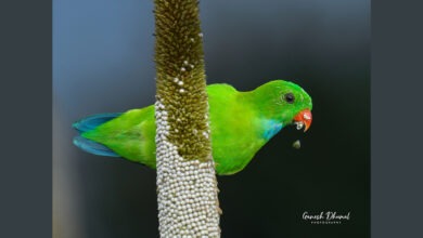 फलटण तालुक्यात ‘पिचू पोपट’ पक्षाचे दर्शन; गणेश धुमाळ यांनी केले छायाचित्रण