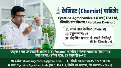 फलटण: निंभोरे येथील ‘सिस्टीन ॲग्रोकेमिकल्स’मध्ये ‘केमिस्ट’ पाहिजेत; B.Sc. उमेदवारांसाठी नोकरीची संधी!