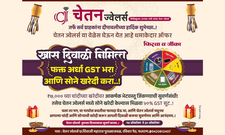ही दिवाळी अधिक आनंदात आणि उत्साहात साजरी करण्यासाठी ग्राहकांनी या दुहेरी ऑफर्सचा लाभ घ्यावा, असे आवाहन चेतन ज्वेलर्सच्या वतीने करण्यात आले आहे. या योजनांमुळे ग्राहकांना केवळ दागिन्यांची खरेदीच करता येणार नाही, तर सोबत एक आकर्षक भेटवस्तू आणि पैशांची बचतही करता येणार आहे, ज्यामुळे त्यांची दिवाळी खऱ्या अर्थाने सुवर्णमय होणार आहे.