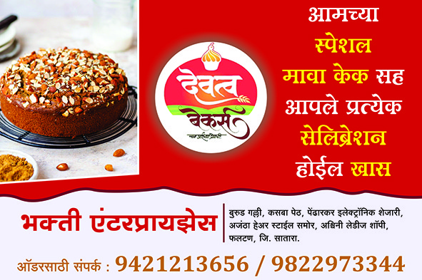 ‘भक्ती एंटरप्रायझेस’ने फलटणकरांसाठी ही अनोखी संधी उपलब्ध करून दिली आहे. शहरातील पेंढारकर इलेक्ट्रॉनिक शेजारी, अजंठा हेअर स्टाईल समोर असलेल्या दुकानात हा केक उपलब्ध असून, अधिक माहितीसाठी किंवा ऑर्डरसाठी ९४२१२१३६५६ आणि ९८२२९७३३४४ या क्रमांकांवर संपर्क साधण्याचे आवाहन करण्यात आले आहे.
