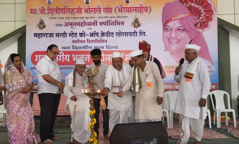 महाराजा उद्योग समूहाचे संस्थापक दिलीपसिंह भोसले यांच्या अमृत महोत्सवी वाढदिवसानिमित्त या राज्यस्तरीय भजन स्पर्धेचे आयोजन करण्यात आले आहे. याप्रसंगी स्वयं सिद्धा महिला संस्थेच्या अध्यक्षा मधुबाला भोसले, महाराजा मल्टीस्टेटचे व्हाईस चेअरमन रणजितसिंह भोसले, वारकरी संघटनेचे केशवराव जाधव महाराज यांच्यासह इतर मान्यवर उपस्थित होते.