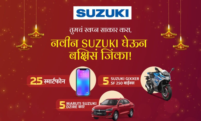 या दिवाळीनिमित्त, गजानन सुझुकीच्या कोणत्याही दुचाकीच्या खरेदीवर ग्राहक लकी ड्रॉमध्ये सहभागी होऊ शकतील. या लकी ड्रॉमधून ५ भाग्यवान विजेत्यांना मारुती सुझुकी डिझायर कार, ५ विजेत्यांना सुझुकी जिक्सर एसएफ २५० बाईक्स आणि २५ विजेत्यांना स्मार्टफोन बक्षीस म्हणून दिले जाणार आहेत.