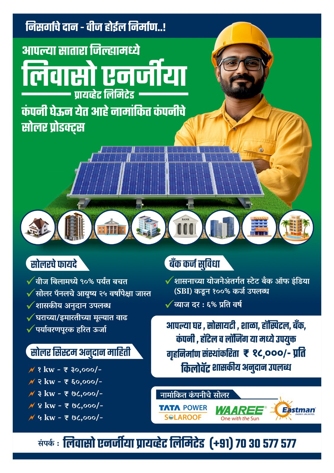 टाटा पॉवर, वारी आणि इस्टमॅन यांसारख्या देशातील नामांकित कंपन्यांची सौर ऊर्जा उत्पादने आता फलटणमध्ये सहज उपलब्ध झाली आहेत. यामध्ये रूफटॉप सोलर सिस्टीमसह, सोलर कृषी पंप, सोलर वॉटर सिस्टीम आणि सोलर स्ट्रीट लाईट यांसारख्या उत्पादनांचा समावेश आहे. या प्रणालीमुळे नागरिकांना त्यांच्या वीज बिलात ९० टक्क्यांपर्यंत बचत करणे शक्य होणार आहे.
