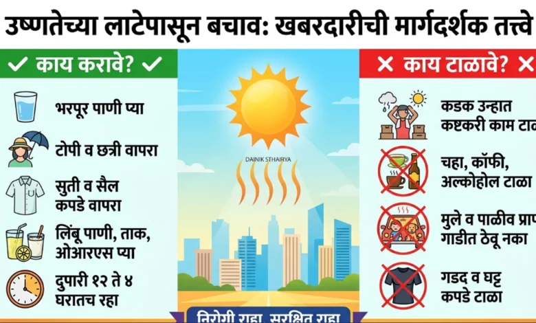 वाढत्या उन्हाळ्याच्या पार्श्वभूमीवर उष्माघातापासून (Heatwave) बचाव करण्यासाठी सातारा जिल्हाधिकारी संतोष पाटील आणि फलटणचे तहसीलदार डॉ. अभिजित जाधव यांनी नागरिकांना विशेष काळजी घेण्याचे आवाहन केले आहे. ‘काय करावे आणि काय करू नये’ याबाबत प्रशासनाने सविस्तर मार्गदर्शक सूचना जारी केल्या आहेत.