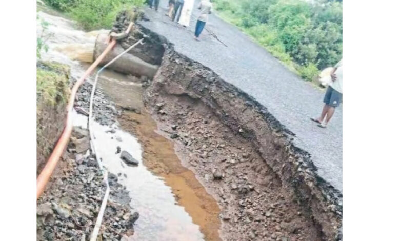 माण तालुक्यात जोरदार पावसाने वाहून गेलेले रस्ते.