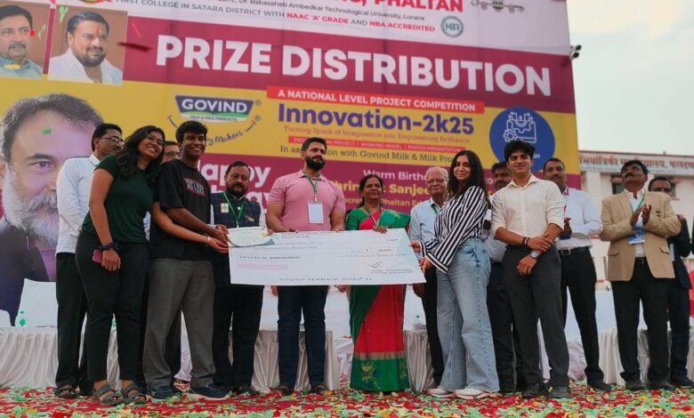 स्थैर्य, फलटण, दि. 11 ऑक्टोबर : फलटण एज्युकेशन सोसायटी संचलित अभियांत्रिकी महाविद्यालयात आयोजित राष्ट्रीय स्तरावरील ‘इनोव्हेशन २K२५’ प्रोजेक्ट स्पर्धेचा पारितोषिक वितरण सोहळा नुकताच उत्साहात संपन्न झाला. ८ राज्यांतील सुमारे ३ हजार विद्यार्थ्यांनी या स्पर्धेत सहभाग घेतला होता.