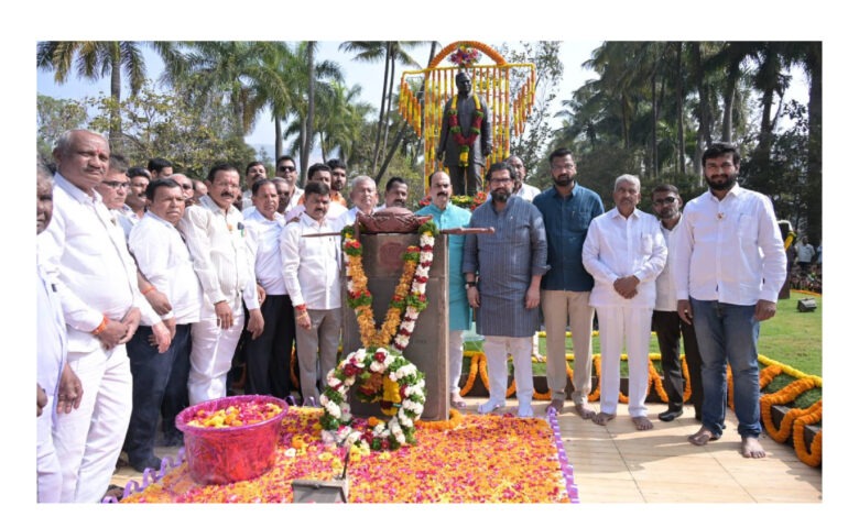 सातारा – स्व. श्रीमंत छ. अभयसिंहराजे भोसले यांच्या पुर्णाकृती पुतळ्याला अभिवादन करताना ना. श्रीमंत छ. शिवेंद्रसिंहराजे भोसले व मान्यवर.