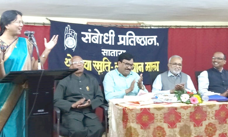 संबोधी प्रतिष्ठानच्या वतीने ’ मी आणि माझे लेखन ’ पुरोगामी महिला साहित्यिकांचे विचार मंथन या विषय सूत्रावर आयोजित करण्यात आलेल्या 39व्या वर्षातील थोरांच्या स्मृती व्याख्यानमालेत त्या ’महात्मा फुले आणि महर्षी विठ्ठल रामजी शिंदे यांचे साहित्य ’ या विषयावर त्या बोलत होत्या. अध्यक्षस्थानी संबोधी प्रतिष्ठानचे अध्यक्ष रमेश इंजे होते. विचार मंचावर उपाध्यक्ष प्रा. प्रशांत साळवे, विश्वस्त डॉ. सुवर्णा यादव व डॉ.जयपाल सावंत उपस्थित होते.