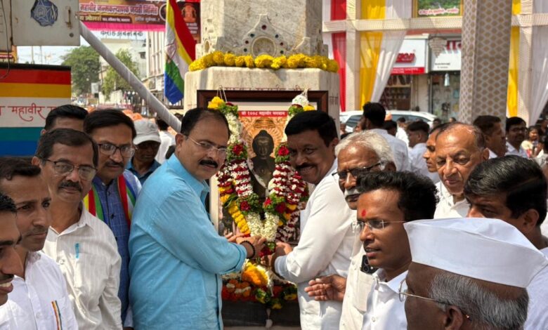 या अभिवादन प्रसंगी भगवान महावीर जयंती उत्सव समितीचे सर्व पदाधिकारी, मान्यवर आणि जैन समाज बांधव मोठ्या संख्येने उपस्थित होते.