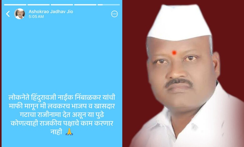जाधव यांनी आज पहाटे ठेवलेल्या स्टेटसमध्ये म्हटले आहे की, “लोकनेते हिंदुरावजी नाईक निंबाळकर यांची माफी मागून मी लवकरच भाजप व खासदार गटाचा राजीनामा देत असून, या पुढे कोणत्याही राजकीय पक्षाचे काम करणार नाही.”
