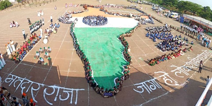 यावेळी मानवी साखळीद्वारे भारताचा नकाशा तयार करण्यात आला होता.