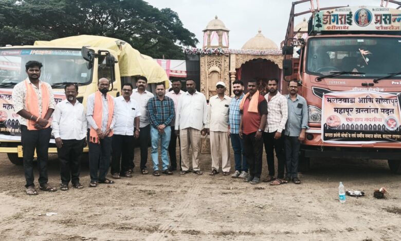 आज सकाळी छत्रपती शिवाजी महाराज यांच्या प्रतिमेस अभिवादन करून, तहसीलदार डॉ. अभिजित जाधव यांच्या हस्ते मदतवाहनांचे पूजन करण्यात आले. त्यानंतर हे दोन्ही ट्रक धाराशिव जिल्ह्यातील परांडा तालुका आणि जालना जिल्ह्यातील घनसावंगी तालुक्याकडे रवाना झाले.
