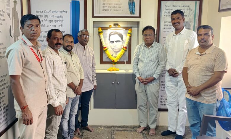 मर्ढे- बा.सी.मर्ढेकर यांच्या प्रतिमेला पुष्पहार घालून अभिवादन करताना डॉ. राजेंद्र माने. त्यावेळी नंदकुमार सावंत व इतर.