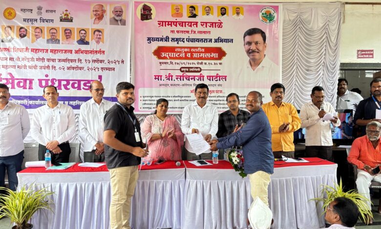 स्थैर्य, राजाळे, दि. १७ सप्टेंबर : पंतप्रधान नरेंद्र मोदी यांच्या ७५ व्या अमृत महोत्सवी वाढदिवसानिमित्त राज्य शासनाच्या निर्देशानुसार, फलटण तालुक्यात “मुख्यमंत्री समृद्ध पंचायतराज अभियान” आणि “महसुली सेवा पंधरवडा” या उपक्रमांचा शुभारंभ मौजे राजाळे येथे उत्साहात करण्यात आला. आमदार श्री. सचिन पाटील यांच्या अध्यक्षतेखाली हा कार्यक्रम संपन्न झाला.