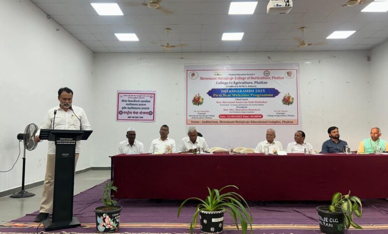 फलटण एज्युकेशन सोसायटीच्या श्रीमंत शिवाजीराजे उद्यानविद्या महाविद्यालय व कृषी महाविद्यालयात शैक्षणिक वर्ष २०२५-२६ च्या प्रथम वर्षाच्या विद्यार्थ्यांसाठी आयोजित ‘दीक्षारंभ’ कार्यक्रमात ते प्रमुख पाहुणे म्हणून बोलत होते. या कार्यक्रमात नवागत विद्यार्थ्यांचे उत्साहात स्वागत करण्यात आले.