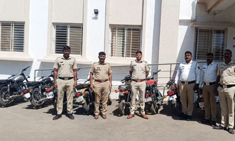 फलटण शहरात विनाकारण वेगाने आणि कर्कश आवाजात फिरणाऱ्या बुलेट व इतर दुचाकींवर शहर पोलिसांनी विशेष मोहीम राबवून मोठी कारवाई केली आहे. यात ६ बुलेट आणि १ यामाहा गाडीवर कारवाई करत तब्बल ६०,५०० रुपयांचा दंड वसूल करण्यात आला आहे.