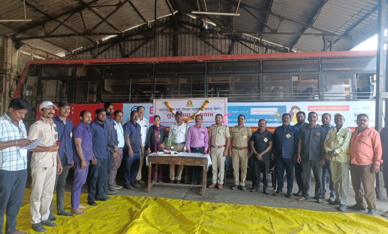 सुरक्षितता अभियानाच्या अनुषंगाने आगारातील चालक, वाहक, यांत्रिक व पर्यवेक्षकीय कर्मचाऱ्यांना सुरक्षिततेची प्रतिज्ञा देण्यात आली. उपस्थित चालकांचा गुलाब पुष्प देऊन सत्कार करण्यात आला.