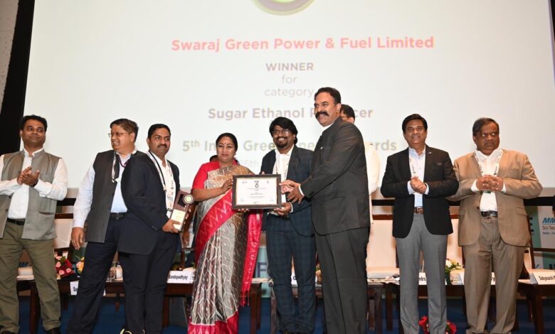स्थैर्य, फलटण, दि. २६ सप्टेंबर : फलटण तालुक्यातील स्वराज ग्रीन पॉवर अँड फ्युअल लिमिटेड या कंपनीला भारत सरकारच्या पर्यावरण, वन व हवामान बदल मंत्रालयाच्या वतीने दिला जाणारा प्रतिष्ठेचा “इंडिया ग्रीन एनर्जी अवॉर्ड २०२५” जाहीर झाला आहे. “पर्यावरण संरक्षण व उच्च दर्जाची उत्पादन कार्यक्षमता साध्य करण्यासाठी सर्वोत्तम तंत्रज्ञान अवलंबणारा शुगर इथेनॉल उत्पादक” या विशेष श्रेणीत हा पुरस्कार प्राप्त झाला आहे.