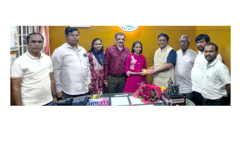 सातारा – विनोद कुलकर्णी यांच्याकडे निधी देताना पालवी शिराळकर समवेत मान्यवर.