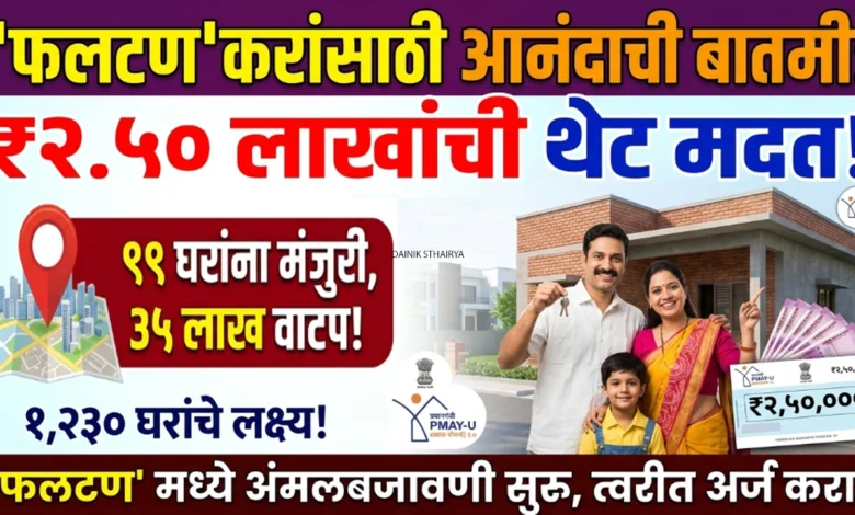 प्रधानमंत्री आवास योजना (शहरी) २.० अंतर्गत फलटण नगरपरिषदेमार्फत ९९ घरकुलांना मंजुरी मिळून ३५ लाखांचे अनुदान वाटप करण्यात आले आहे. सर्वसामान्यांना पक्के घर घेण्यासाठी थेट २.५० लाखांपर्यंतची सबसिडी मिळत असून, पात्र नागरिकांनी याचा लाभ घेण्याचे आवाहन करण्यात आले आहे.