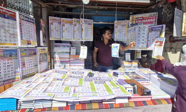 स्थैर्य, सातारा, दि. 20 डिसेंबर : केवळ दहा दिवसावर आलेल्या नूतन इंग्रजी वर्ष अर्थात जानेवारी 2026 च्या आगमनाची चाहूल सातारा शहरात लागली आहे.मोती चौकातील विविध पुस्तकालयातून अशी नामवंत कंपन्यांचे कॅलेंडर अर्थात दिनदर्शिका मोठ्या प्रमाणात विक्रीस उपलब्ध झाल्या असून त्या खरेदीसाठी सातारकरांची गर्दी होत आहे.(छायाचित्र : अतुल देशपांडे, सातारा)