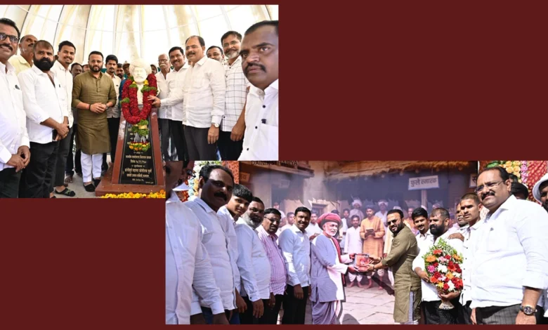 राज्याचे ग्रामविकास मंत्री जयकुमार गोरे यांनी फलटण येथील महात्मा फुले चौकात क्रांतिसूर्य महात्मा ज्योतिराव फुले यांना जयंतीनिमित्त पुष्पहार अर्पण करून विनम्र अभिवादन केले.