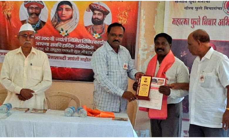 दैनिक स्थैर्य । 13 मे 2025। फलटण । महात्मा फुले विचार अभियानाच्या वतीने कृषी सेवा रत्न श्री सचिन जाधव यांना महात्मा फुले गौरव पुरस्कार 2025 चा स्मृती चिन्ह व प्रमाणपत्र देऊन सन्मानित करण्यात आले फलटण येथील उपळेकर मंदिर येथे झालेल्या महात्मा फुले गुणगौरव कार्यक्रमध्ये क्रांती ज्योती सावित्रीबाई फुले विचार मंचचे अध्यक्ष तुकाराम कोकाटे यांच्या हस्ते कृषि सेवारत्न सचिन जाधव यांचा महात्मा फुले गौरव पुरस्कार देऊन सन्मानित करण्यात आला.
