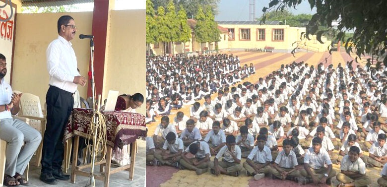 देशाला व भारतीय संविधानाला आज परकीय शक्तीकडूनही धोका निर्माण होत आहे. यासाठी सर्वांनी जागृत असणे गरजेचे आहे. देश हितासाठी व देश रक्षणासाठी काम करणार्या व्यक्तींना मतदान करणे, हे आपले कर्तव्य आहे. संविधान दिन 26 नोव्हेंबर ला साजरा करण्याचे आवाहन केले. या कार्यक्रमात इयत्ता नववी, दहावी, 11 वी व 12 वीमधील एकूण 657 विद्यार्थी विद्यार्थी सहभागी झाले होते. सागर खताळ यांनी प्रास्ताविक केले. प्राचार्य संदीप नाळे आभार आभार मानले. यावेळी संस्थेचे प्राचार्य संदीप नाळे, शिक्षक, शिक्षिका व कर्मचारी वर्ग, विद्यार्थी, विद्यार्थिनी उपस्थित होते.