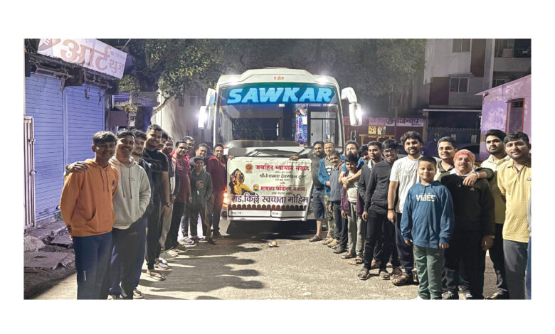 सातारा – किल्ले सिंधुदुर्ग स्वच्छता मोहीमेदरम्यान रवाना होताना जयहिंद व्यायाम मंडळ व मावळा फौंडेशनचे कार्यकर्ते.