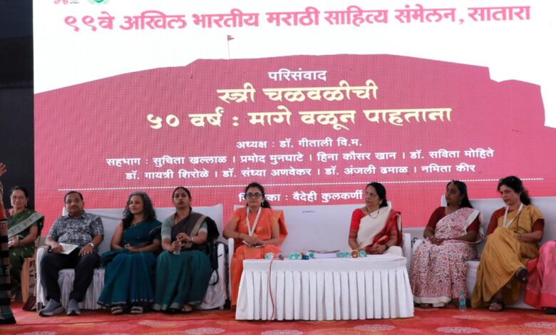 ९९व्या अखिल भारतीय मराठी साहित्य संमेलनात आज (दि. ३) ‘स्त्री चळवळीची पन्नास वर्षे : मागे वळून पाहताना’ या विषयावर परिसंवादाचे आयोजन करण्यात आले होते. ज्येष्ठ स्त्रीवादी सामाजिक कार्यकर्त्या डॉ. गीताली वि. म. अध्यक्षस्थानी होत्या. सुचिता खल्लाळ, प्रमोद मुनघाटे, हिनाकौसर खान, डॉ. सविता मोहिते, डॉ. गायत्री शिरोळे, डॉ. संध्या अणवेकर, डॉ. अंजली ढमाळ, नमिता कीर हे साहित्यिक सहभागी झाले होते. त्यांच्याशी वैदेही कुलकर्णी यांनी संवाद साधला.