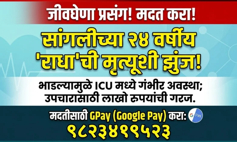 सांगली येथील रुग्णालयात गंभीर भाजलेल्या अवस्थेत उपचार घेत असलेल्या सौ. राधा रोहित आलाटे यांच्या वैद्यकीय उपचारासाठी मोठा खर्च येत असून, समाजातील दानशूर व्यक्ती आणि संस्थांनी सढळ हाताने आर्थिक मदत करण्याचे आवाहन कुटुंबीयांनी केले आहे.