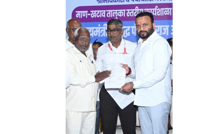 या कार्यशाळेत पंतप्रधान घरकुल आवास योजना टप्पा 2 अंतर्गत भूमिहीन लाभार्थ्यांना तुकडेबंदी कायद्यांतर्ग खटाव तालुक्यातील 18 माण तालुक्यातील 5 लाभार्थ्यांना जमीन उपलब्ध करुन दिली आहे, त्याचे पत्र ग्रामविकास मंत्री श्री. गोरे यांच्या हस्ते लाभार्थ्यांना प्रदान करण्यात आले. तसेच 35 दिवसाच्या विक्रमी कालावधीत घरकुल पूर्ण केलेल्या लाभार्थ्यांचा सत्कार मंत्री गोरे यांनी केला.