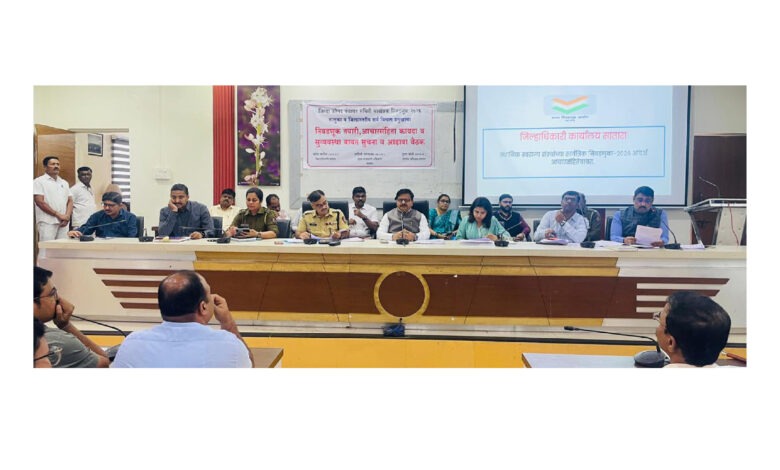 जिल्हाधिकारी कार्यालयातील नियोजन भवनात जिल्हा परिषद व पंचायत समितीच्या सार्वत्रिक निवडणुक तयारी, आदर्श आचारसंहिता व कायदा सुव्यवस्थेच्या अंमलबजावणीबाबत आढावा घेण्यात आला. या आढावा बैठकीला मुख्य कार्यकारी अधिकारी याशनी नागराजन, पोलीस अधीक्षक तुषार दोशी, जलसंपदा विभागाचे अधीक्षक अभियंता अभय काटकर, सार्वजनिक बांधकाम विभागाचे अधीक्षक अभियंता संतोष रोकडे, अपर पोलीस अधीक्षक वैशाली कडूकर, उपजिल्हाधिकारी (महसूल) विक्रांत चव्हाण, निवासी उपजिल्हाधिकारी नागेश पाटील आदी उपस्थित होते.